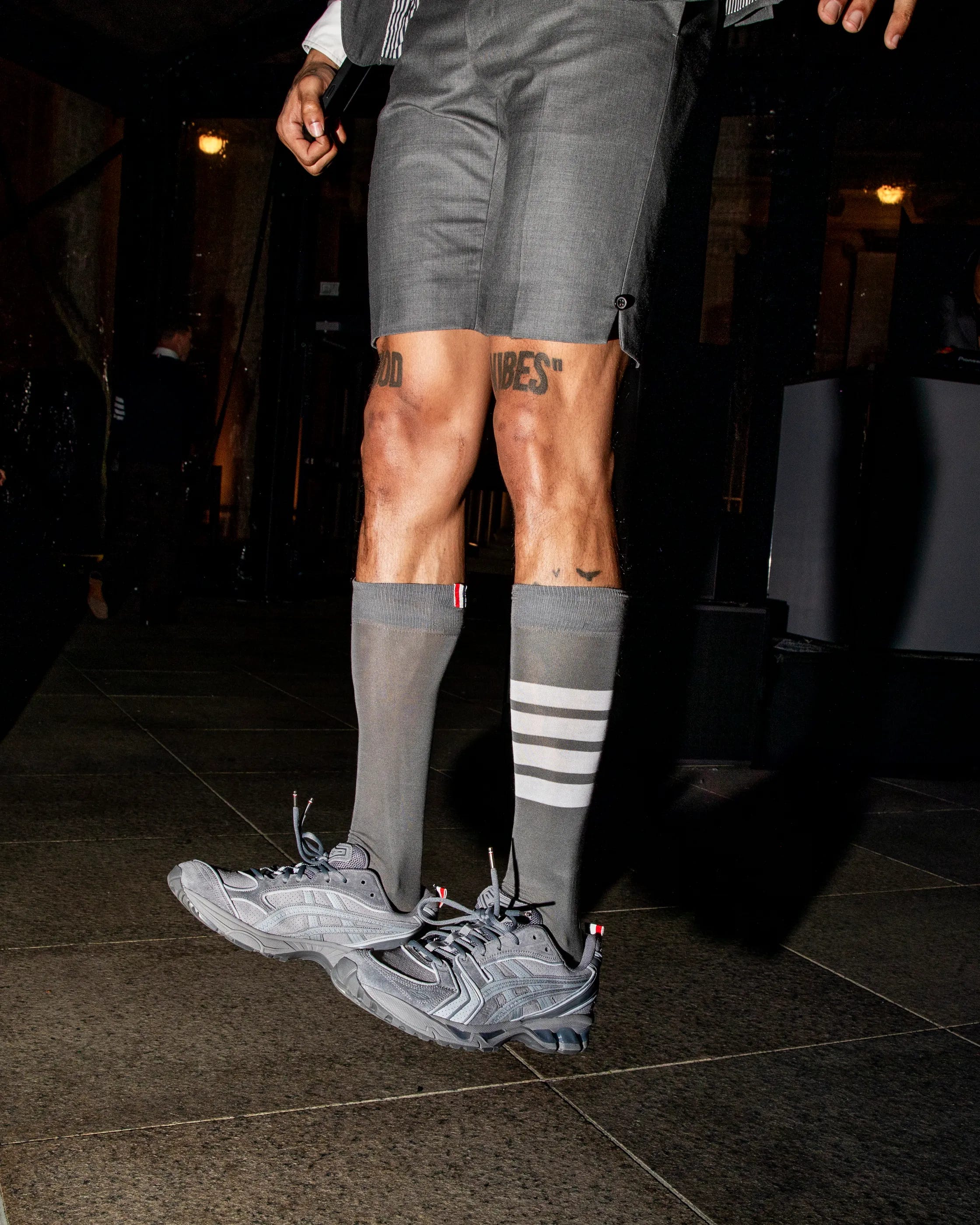 Designer Thom Browne took the GQ Bowl runway by surprise with his first major sneaker collaboration — a custom take on the ASICS GEL-KAYANO 14 debuting alongside his Fall 2026 collection in San Francisco. The release, set for March 2, 2026, blends Browne’s high-fashion sensibility with a cult-favorite performance silhouette, marking a notable crossover between tailored design and athletic footwear culture.