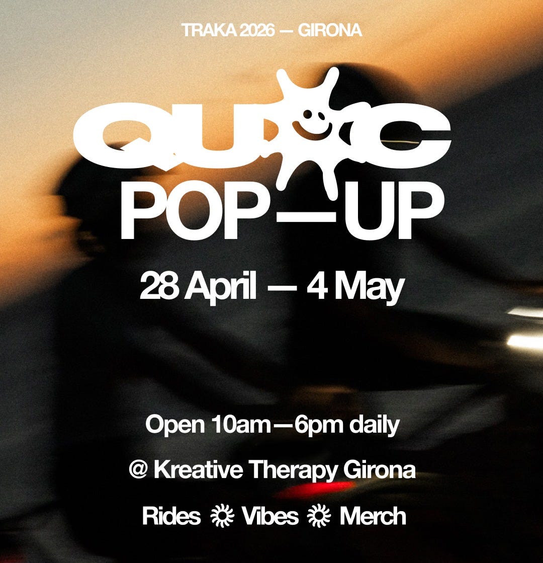 We’re supporting QUOC as they open a Pop Up Space in Girona at Kreative Therapy. Seven days of rides, community moments, and exclusive drops, designed as a hub before and after race days.