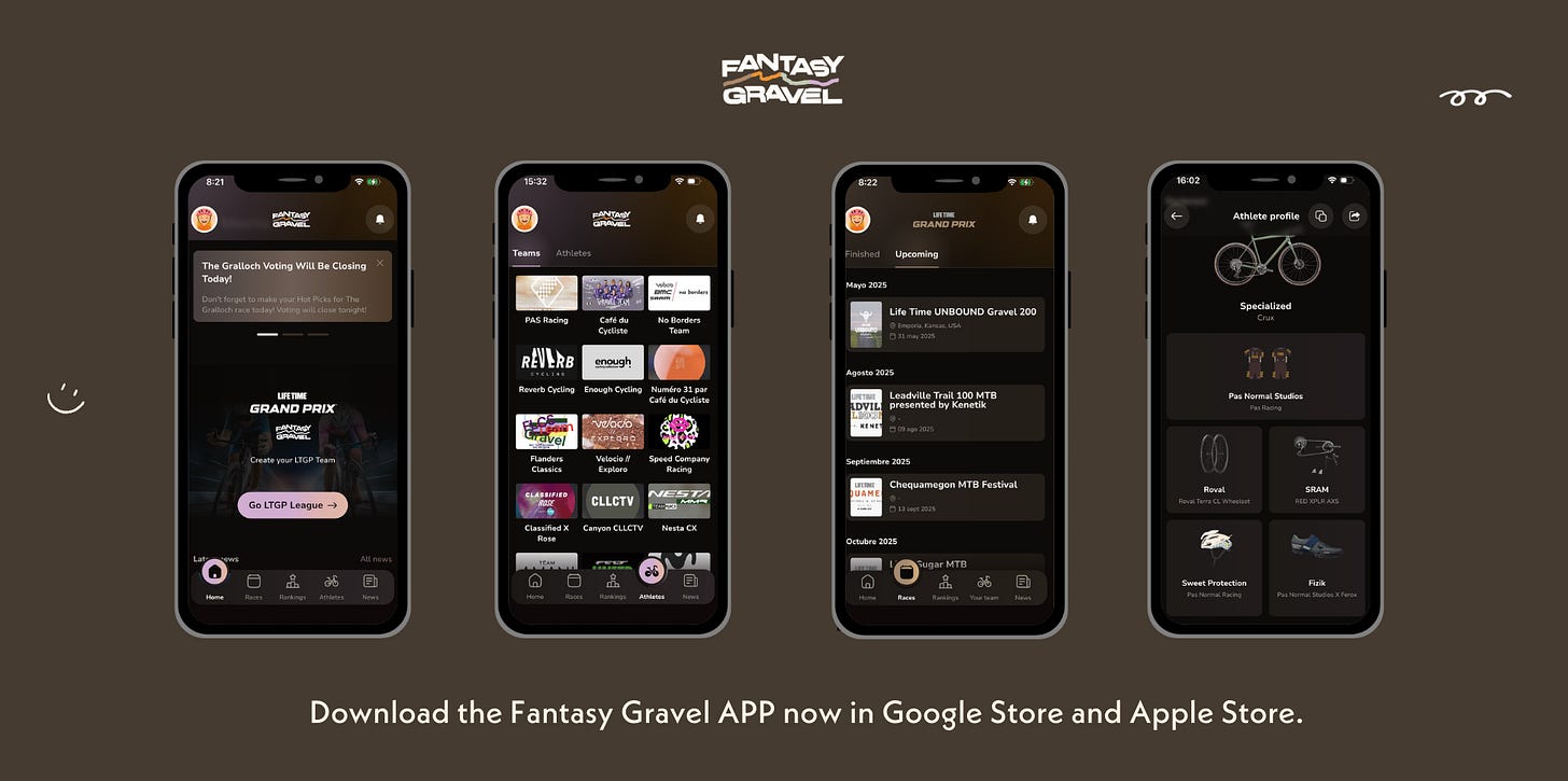 Time to play! Make sure to go to the app and make your hot picks, keep an eye on your chosen riders on race day, and follow them on the Fantasy Gravel app.