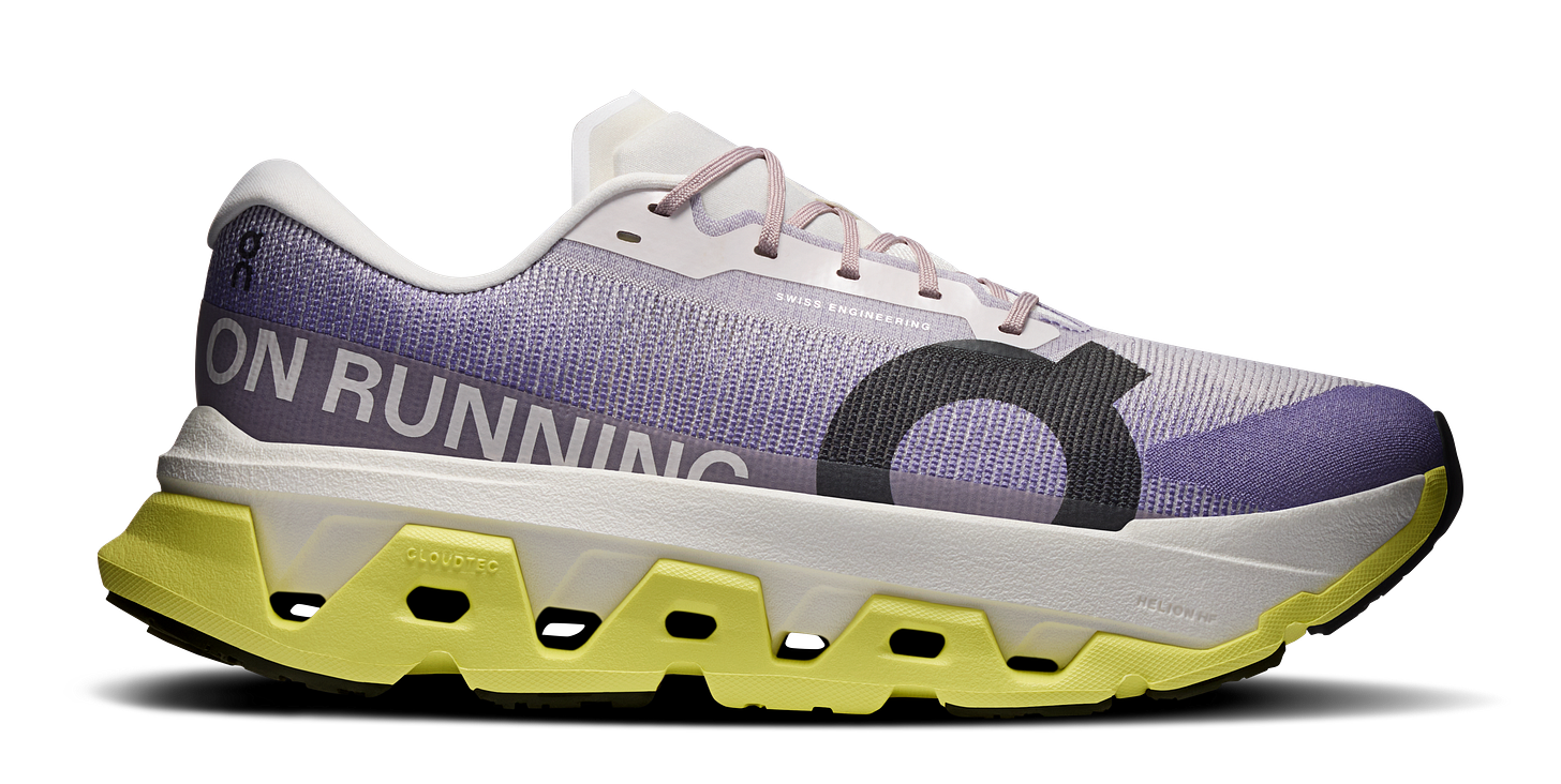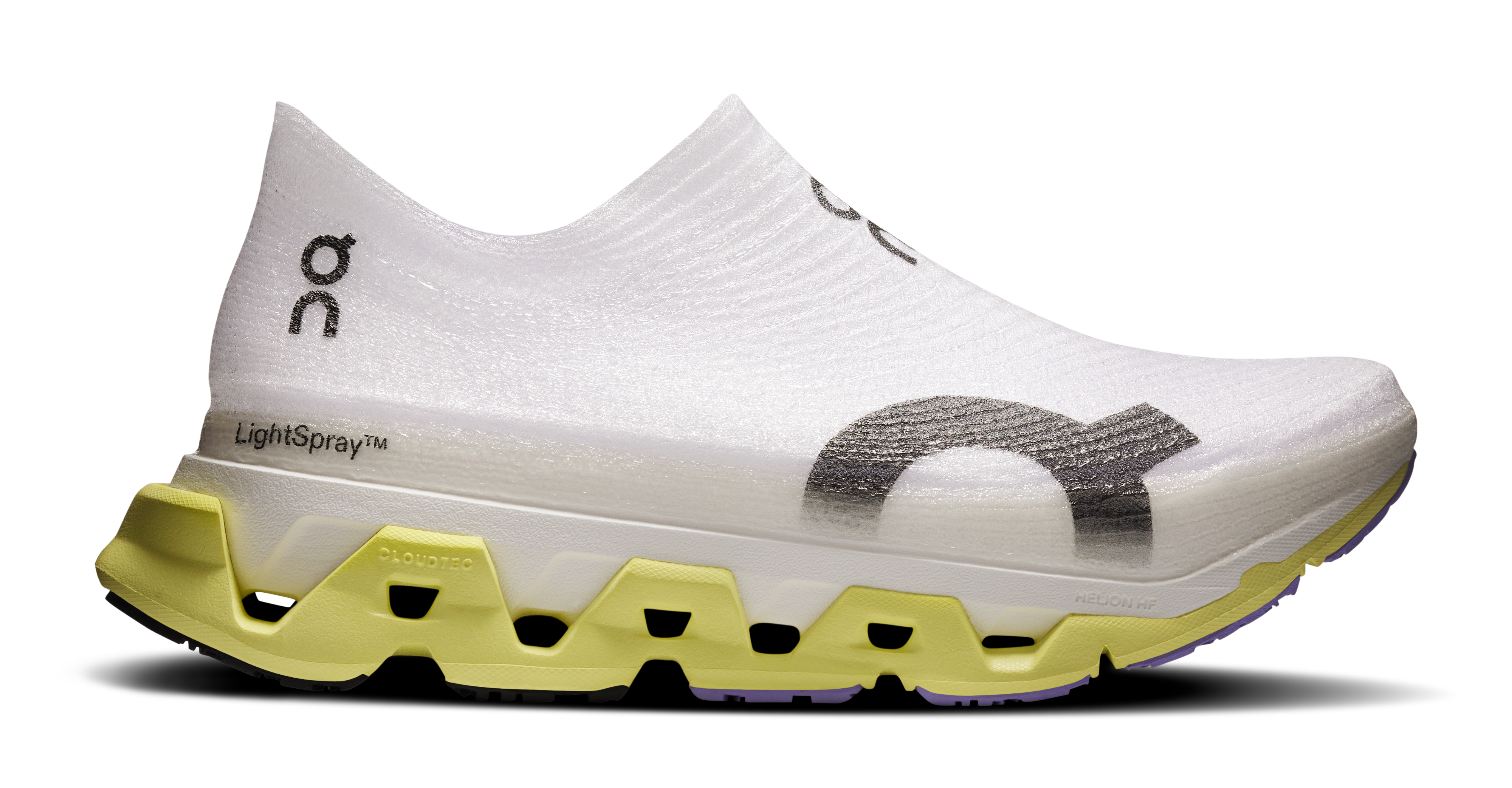 Engineered for those who want to run faster and further, the LightSpray Cloudmonster 3 Hyper elevates the most responsive, most cushioned Cloudmonster with On’s pioneering LightSpray™ upper technology. By extending this ultralight upper construction to a new footwear collection, On delivers the lightest Cloudmonster ever made without compromising on feeling. Made from just eight pieces—one upper, two midsole components, and five small rubber elements—the LightSpray Cloudmonster 3 Hyper weighs only 205g (US M8.5). This minimal construction reduces carbon footprint while delivering elite-level training performance.
